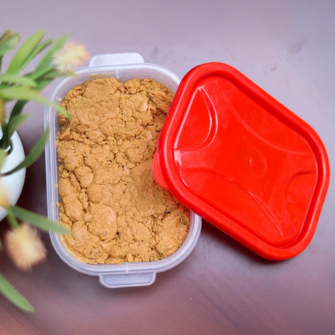 যা পরিষ্কার করে, রোদে শুকিয়ে, হালকা প্রসেসিংয়ের মাধ্যমে গুঁড় করা হয়—